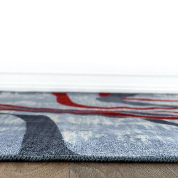 Contemporary Distressed Red 7 ft. 10 in. x 10 ft. Abstract Lines Non Slip Area Rug