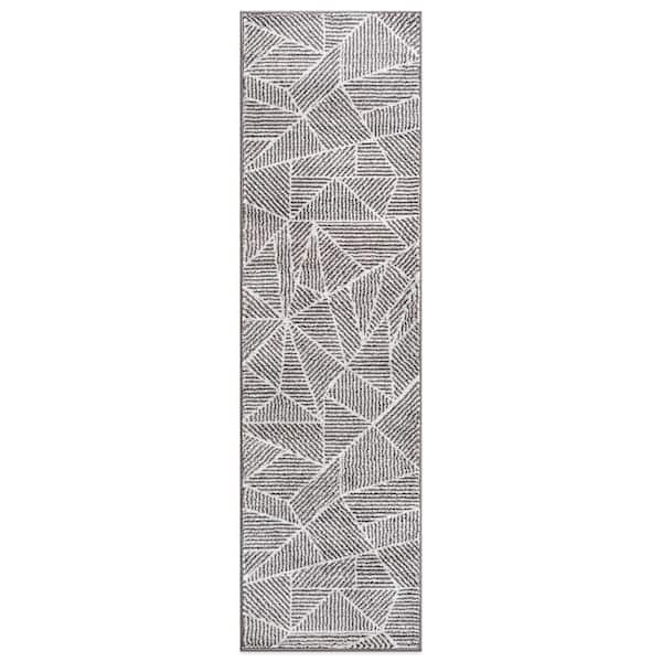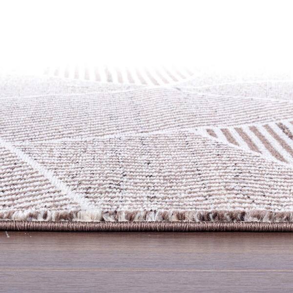 Contemporary Geometric Brown 2 ft. x 7 ft. Stripe Runner Rug