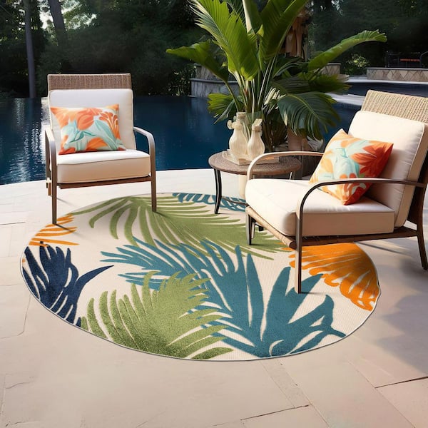Contemporary Tropical Large Floral Multi 8 ft. ROUND Indoor/Outdoor Area Rug