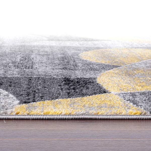 Contemporary Yellow 2 ft. x 7 ft. Distressed Circle Runner Rug