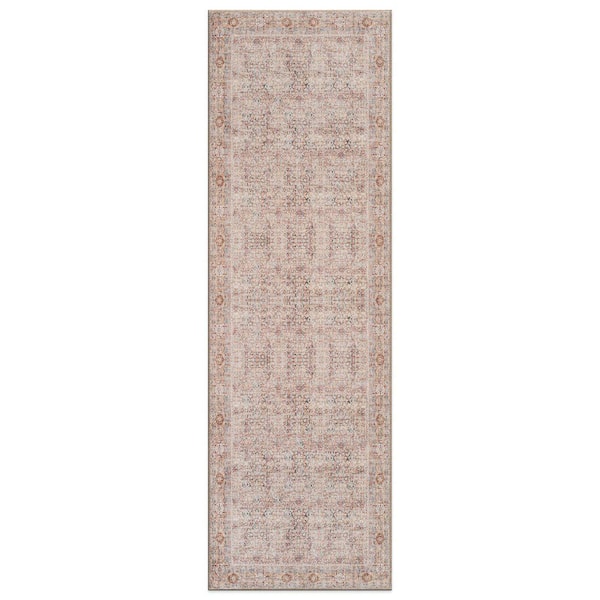 Delano Terracotta Floral Pattern Machine Washable Area Rug Multi 2 ft. 6 in. x 6 ft. Runner Rug