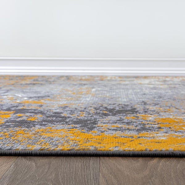 Distressed Contemporary Mustard Abstract 2 ft. x 7 ft. Area Rug
