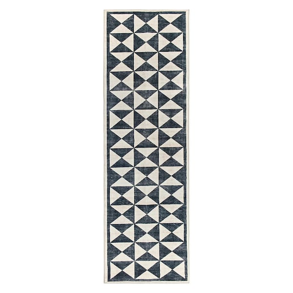 Geometric Diamond Washable Non Slip Cream 2 ft. x 10 ft. Runner Rug