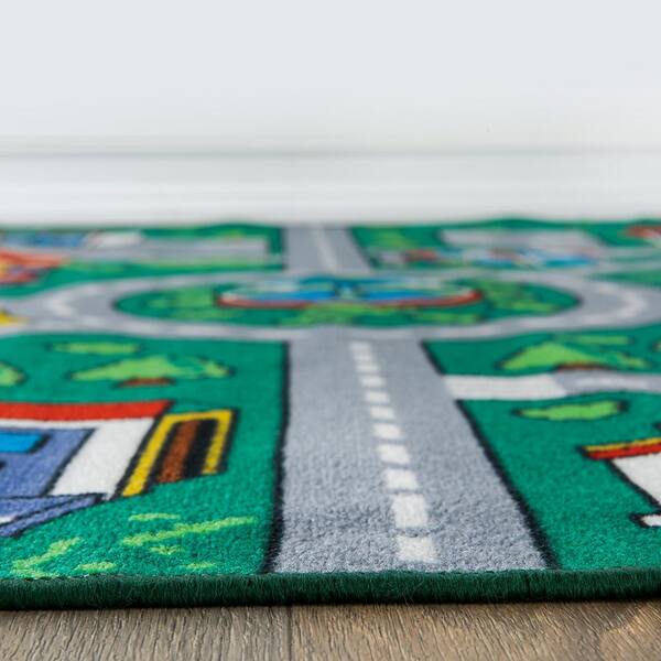Kids Playmat Green 5 ft. x 7 ft. Road Traffic Educational Non Slip Area Rug
