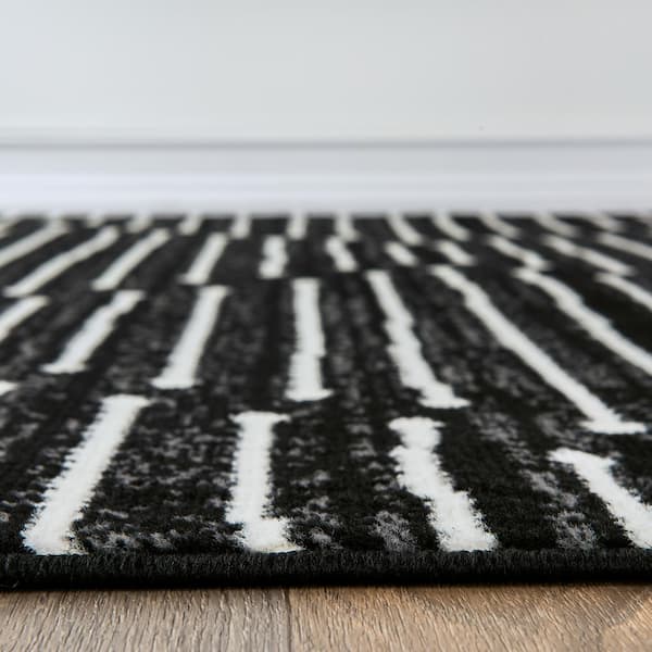 Milan Black 7 ft. 10 in. x 10 ft. Boho Stripe Design Area Rug