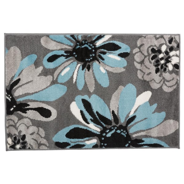 Modern Floral Flowers Blue 2 ft. x 3 ft. Indoor Area Rug
