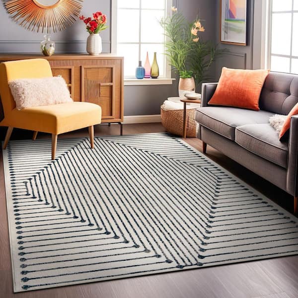 Modern Geometric Area Rug Cream 5 ft. x 7 ft. Area Rug