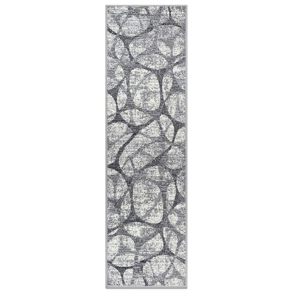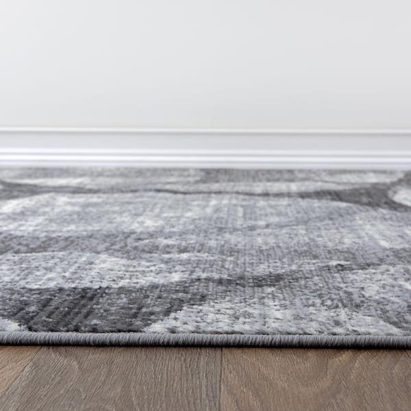 Modern Geometric Distressed Gray 2 ft. x 7 ft. Area Rug