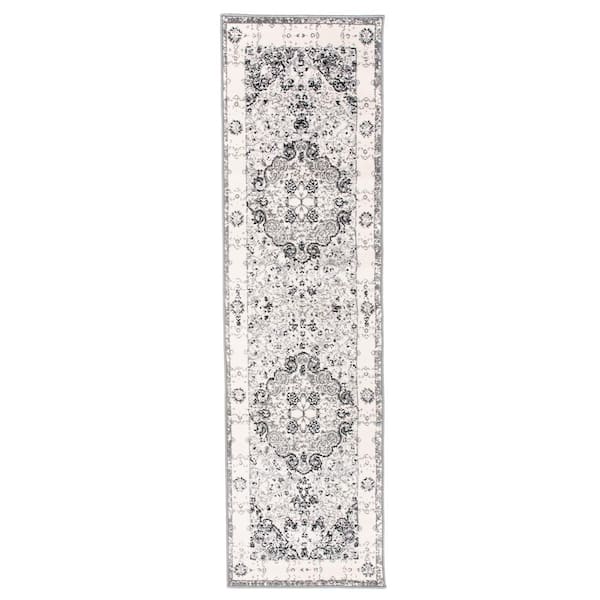 Traditional Distressed Medallion Gray 2 ft. x 10 ft. Area Rug