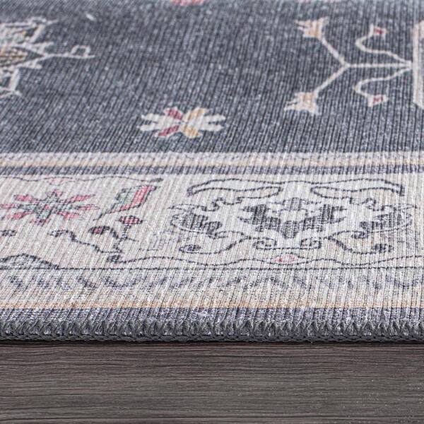 Transitional Bordered Machine Washable 2'6"x10' Dark Gray Runner Rug