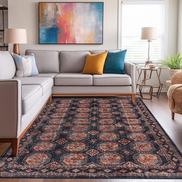 Transitional Moroccan Washable Non Slip Rust 5 ft. x 7 ft. Area Rug