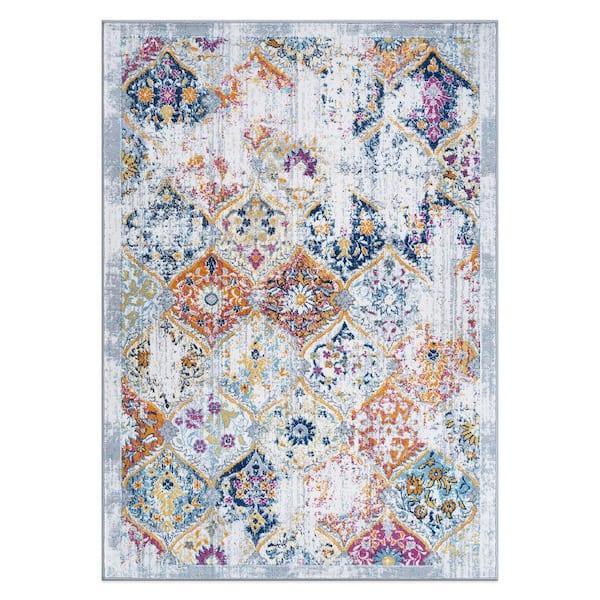 Trellis Bordered Moroccan 5 ft. X 7 ft. Multi Area Rug