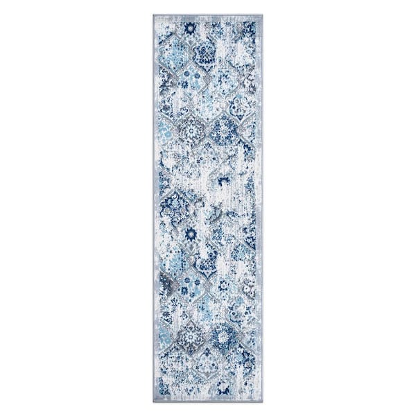 Trellis Bordered Moroccan Blue 2 ft. X 7 ft. Runner Rug