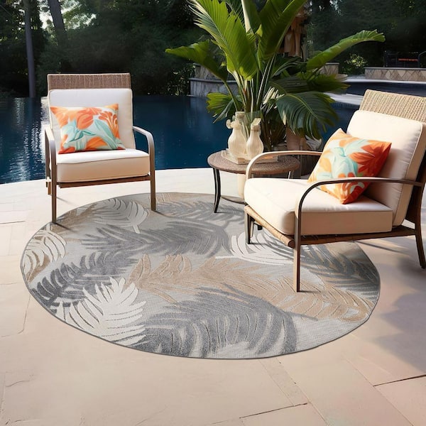 Tropical Floral Modern Indoor/Outdoor Beige 8 ft. ROUND Area Rug
