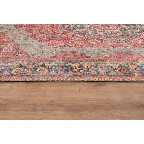 Valora Medallion Machine Washable Red 2 ft. 6 in. x 8 ft. Runner Rug