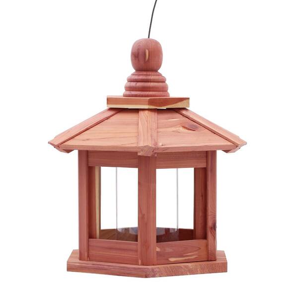 12 in. Red Cedar Wood Hexagonal Pavilion Bird Feeder