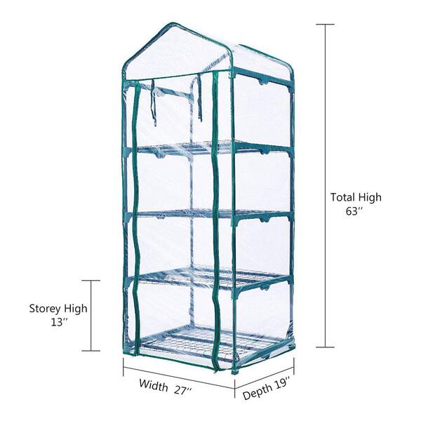 27 in. x 19 in. x 63 in. Green Extra-Wide 4-Tier Covered Portable Greenhouse