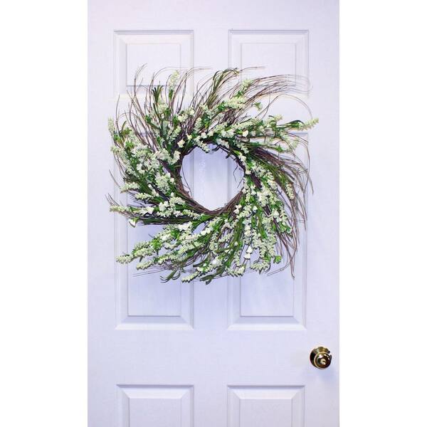 22 in. Artificial Lavender Wreath on Twig Base in White