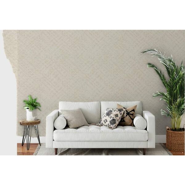 Woven Rattan Light Beige Matte Finish Vinyl on Non-Woven Non-Pasted Wallpaper Sample