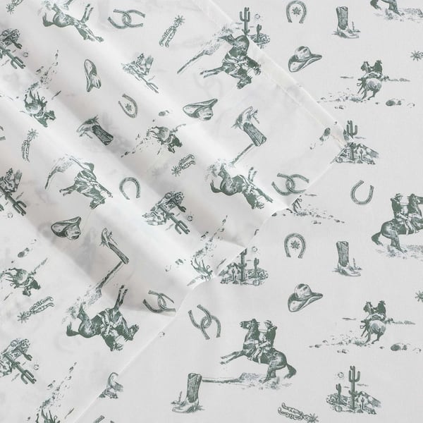 Cowboy Rodeo 4-Piece Sage Green Microfiber Full Sheet Set