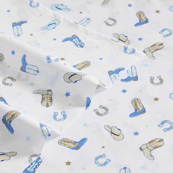 Rodeo Star 4-Piece White/Blue Microfiber Full Sheet Set