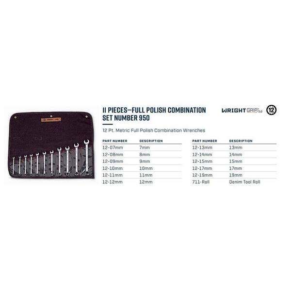 12-Point Full Polish Metric Combination Wrench Set (11-Piece)