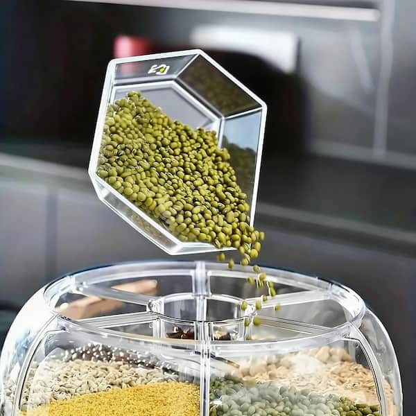 1 Piece Dry Food Dispenser, Rotating Grain Storage Container, 6-Compartment Rice Container, One-Click Output Rice