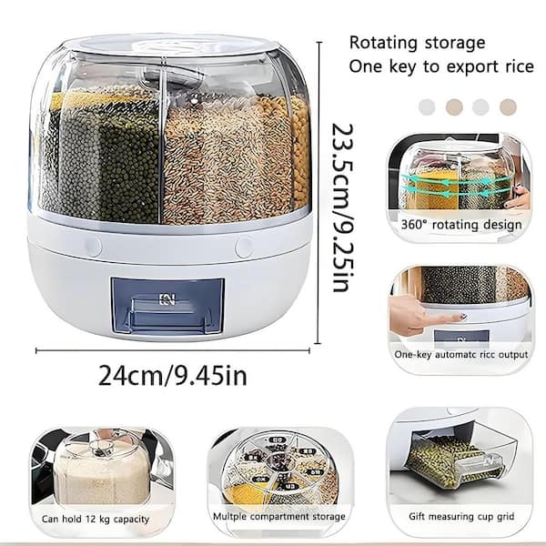 1 Piece Rotating Grain Storage Bin 6 Grids Rice Container One-Click Output Large Capacity Food Dispenser for Rice Grains