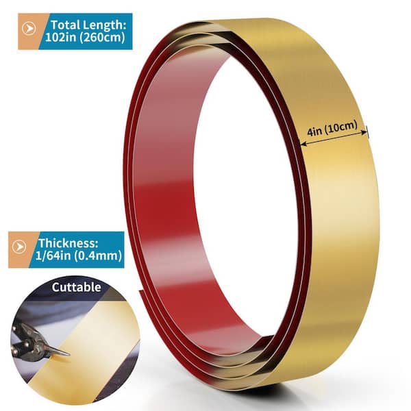 102 in. W x 4 in. H Stainless Steel Gold Toe Kick Baseboard Plate for Bottom of Door, Kitchen Island, Cabinet, Cupboard