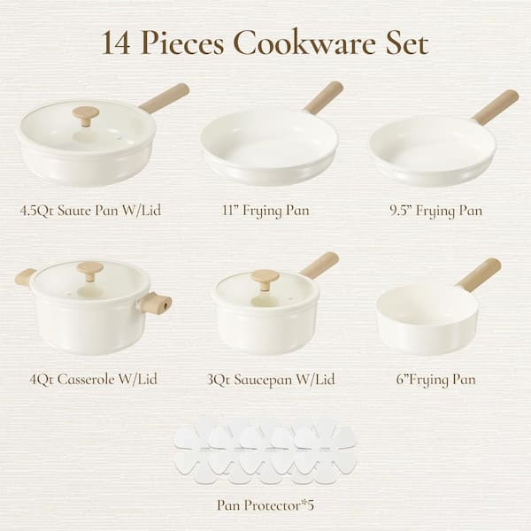 14-Piece Ceramic Woks Cookware Set, Nonstick Cooking Set with Frying Pans Set