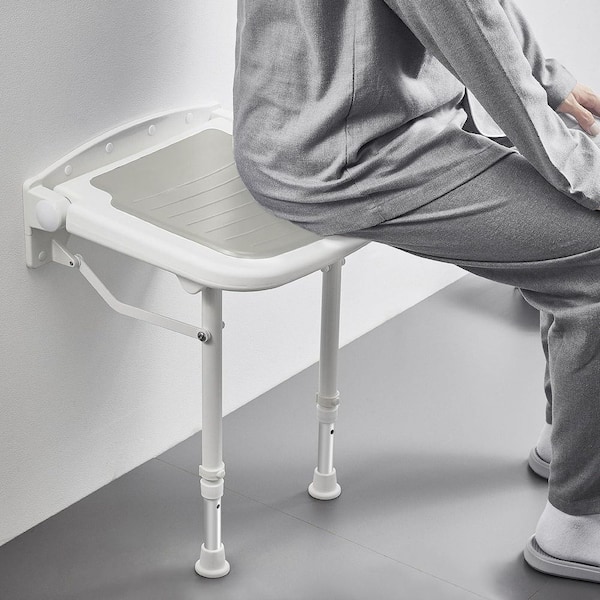 16 in. W Wall Mounted HDPE Shower Seats, Adjustable Height Fold Down Shower Seat for Elderly