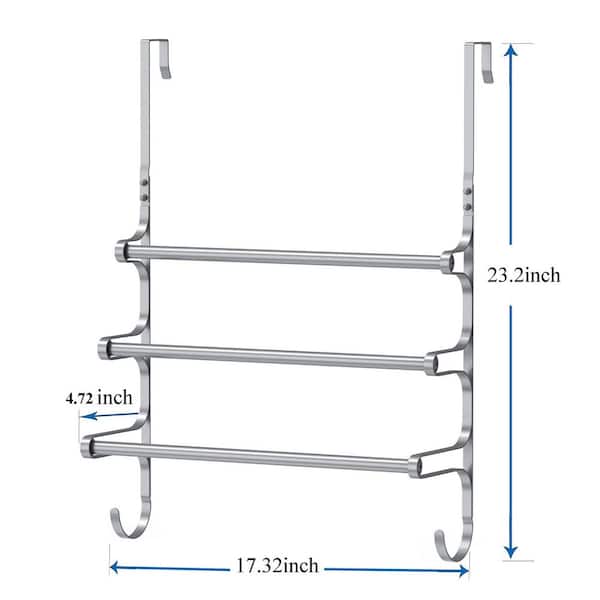 17.32 in. L 3-Bar Over The Door Towel Rack in Silver Gray, Triple Towel Storage Holder with Hooks for Bathroom