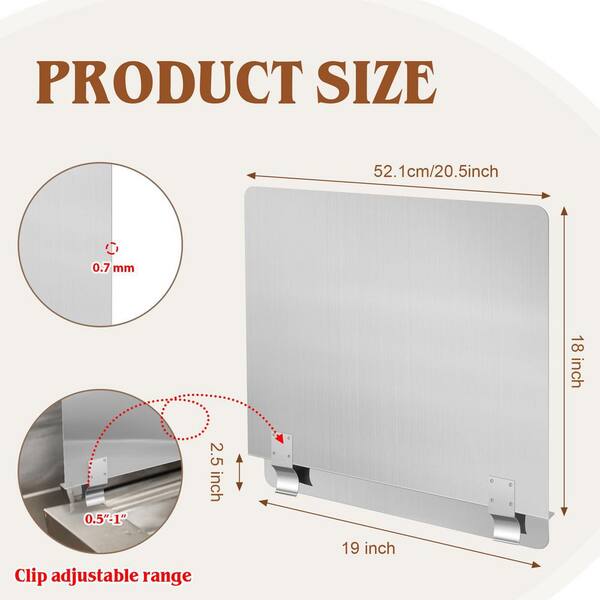2-Pack 20.5 in. W x 18 in. H Stainless Steel Fryer Splash Guard, Side Stove Splash Guard for Stop Oil from Splattering
