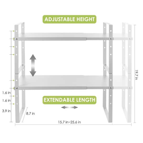 2-Pack White Adjustable Height Expandable Stackable Cabinet Pantry Shelf Organizer Rack