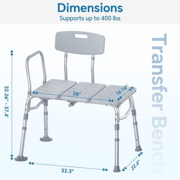 26 in. W Adjustable Height Freestanding Tub Transfer Bench for Bathtub in Grey, Shower Bench for Elderly and Disabled