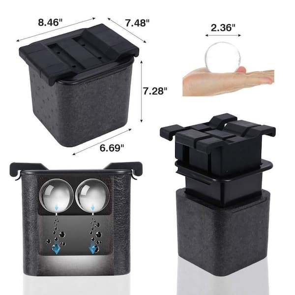 4-Cavity 2.5 in. Round Ice Sphere Trays, Black Ice Mold, Crystal Clear Ice Ball Maker for Whiskey