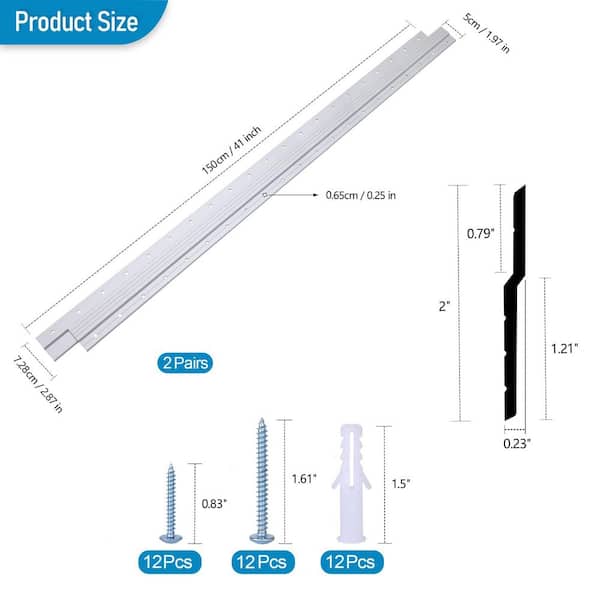 41 in. Heavy Duty French Cleat Hanger, Aluminum Z-Clips French Cleats Mirrors, Picture, Headboard and Cabinet (2-Pack)