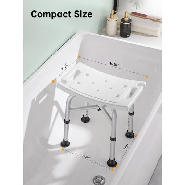 500 lb. Rectangular Non-slip Aluminum Shower Chair in White for Adult with Adjustable Height, Tool-free Assembly