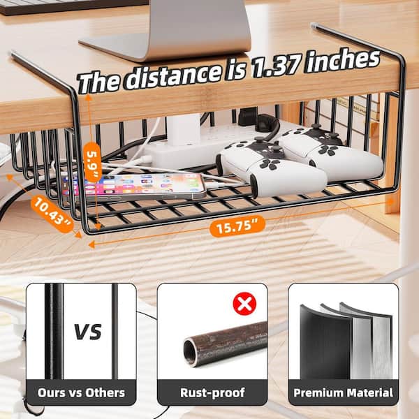 6-Piece Black Under Shelf Storage Basket, Hanging Wire Rack Storage Baskets for Kitchen Pantry Organizer
