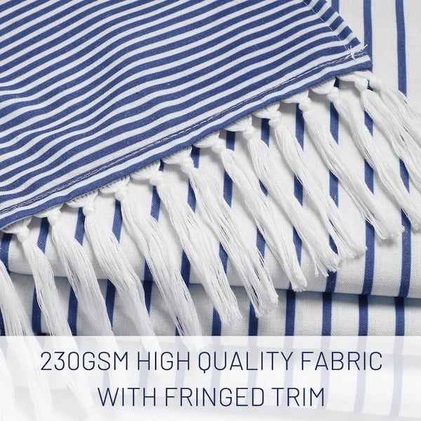 72 in. W x 72 in. L Cotton and Polyester, Shower Curtain in Navy Blue with Stripe Tassel for Bathroom