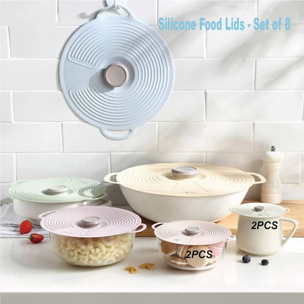 8-Piece Silicone Reusable Heat Resistant Lids for Bowl, Microwave Splatter Cover with 6 Sizes