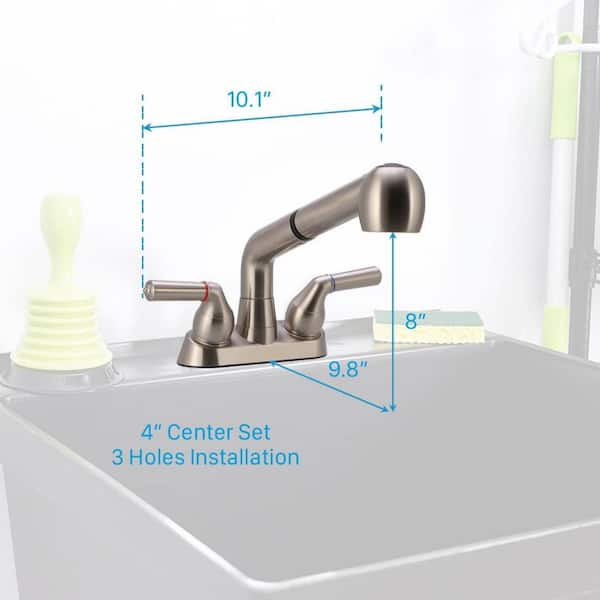 8 in. H x 10.1 in. W x 9.8 in. D Brushed Nickel Utility Sink Faucet, Laundry Room Faucet with Pull Out Sprayer