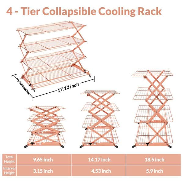 Collapsible 4-Tier Rose Gold Cooling Rack, Stackable Roasting Cooking Drying Wire Cooling Rack for Cookies Baking