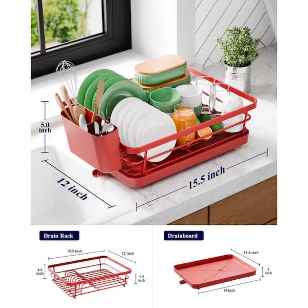 Dish Drying Rack for Kitchen Counter, Stainless Steel Sink Organization and Storage Essentials, Red