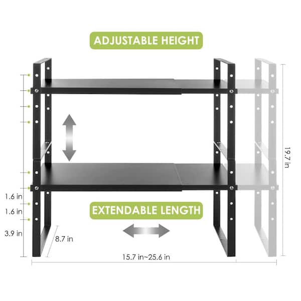 Expandable Kitchen Cabinet Shelf Organizer, Adjustable Pantry Shelf Spice Rack, Stackable Countertop Organizers, Black