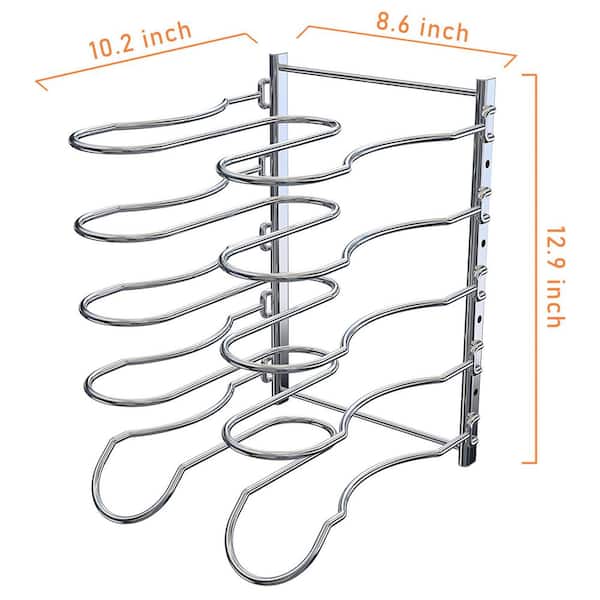 Heavy Duty Chrome Pan Rack, Pot Lid Rack, Kitchen Cabinet Cookware Organizer Rack Holder with 5 Adjustable Dividers