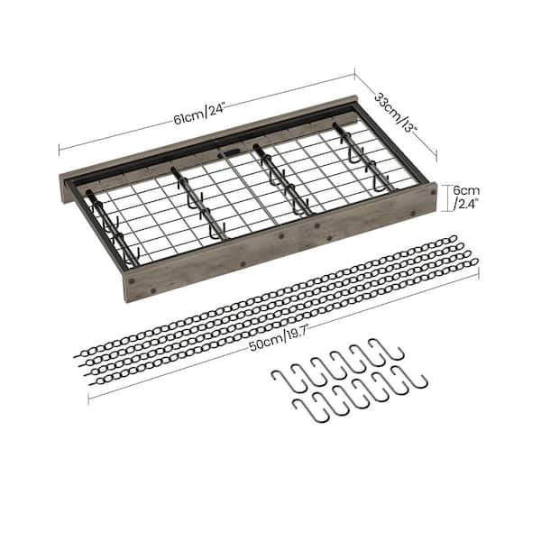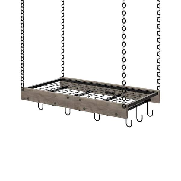 Light Gray Ceiling Mounted Hanging Pot Rack with 12 S-Shaped Hooks for Kitchen Cookware Storage
