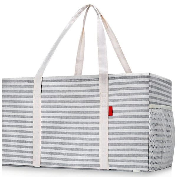 Standing Large Foldable Utility Rectangular Gray Reusable Grocery Bag with Metal Wire Frame and the Sides Rinforced