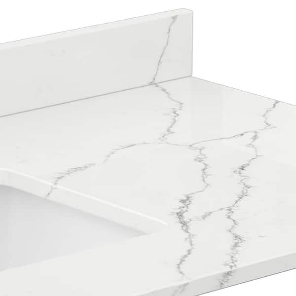 36 in. W x 22 in. D Quartz White Rectangular Single Sink Bathroom Vanity Top in Giotto