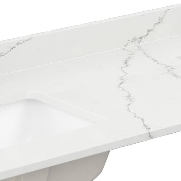 60 in. W x 22 in. D Quartz White Rectangular Double Sink Bathroom Vanity Top in Giotto